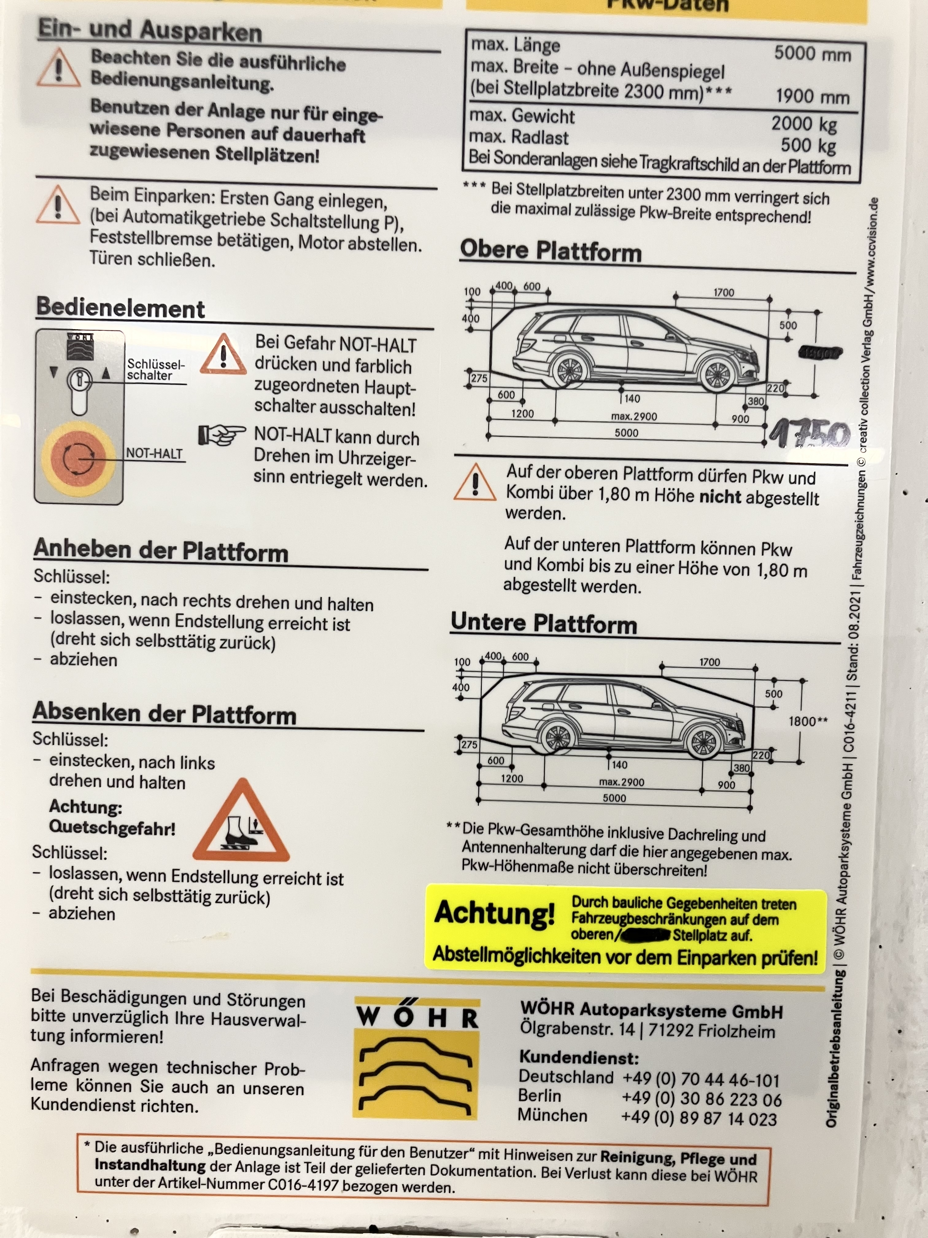 Ein Hebebühnenstellplatz kann direkt im Haus um € 120,- brutto angemietet werden.